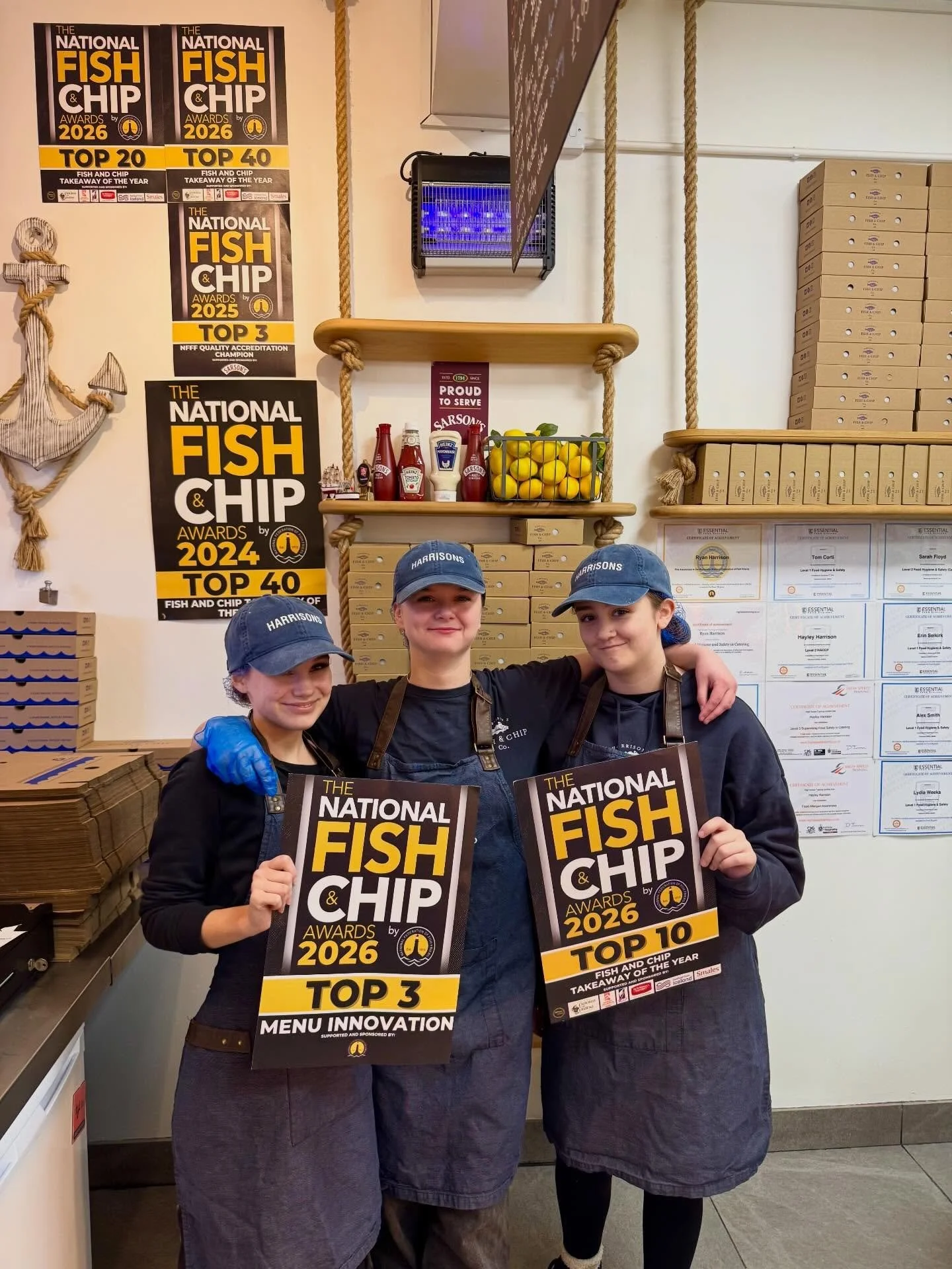 Our incredible crew at Harrisons Fish & Chip Co. holding strong with our latest National Fish & Chip Awards 2026 achievements.